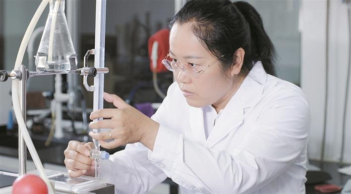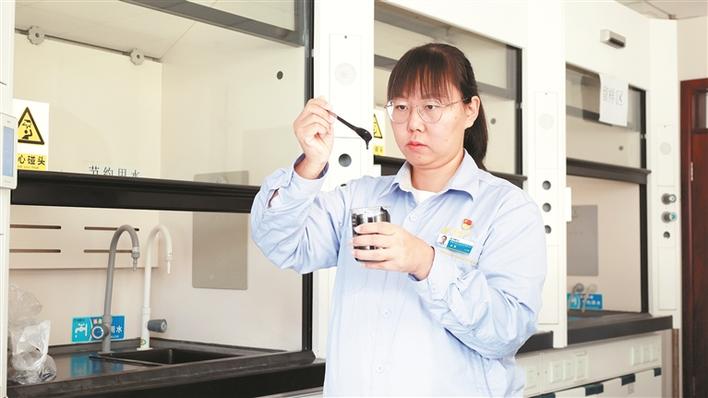 李慧在检测中心煤浆实验室观察调浆后煤浆的稳定性(摄于9月20日)。翟杰 摄 李慧 人物名片 李慧,新疆天业汇合新材料有限公司总工程师、高级工程师,化工总控工一级技师。 匠心感言 机会是给有准备的人。