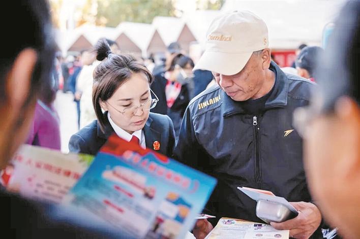 今年10月是第十六个全国“敬老月”,10月11日,八师中级人民法院组织法官和干警组建“银龄守护小组”,就老年人权益保护开展专题普法活动。春彬 摄