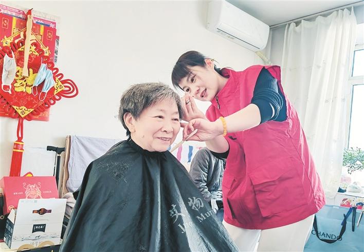 “阿姨,您想剪个什么样的发型?”10月22日,在四师六十一团苹果社区活动室,志愿者马真雨动作轻柔地为78岁的刘溪莲老人梳理头发。