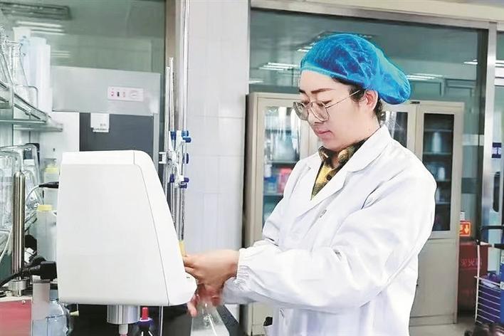 安美玲在研发实验室滴定奶啤酸度(资料图片)。安美玲 提供
