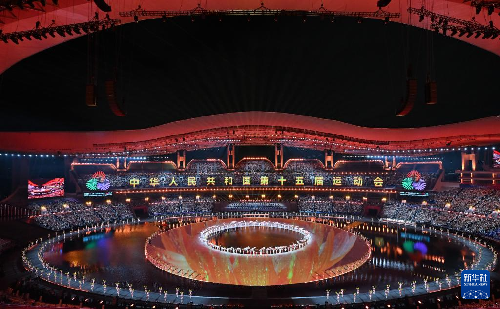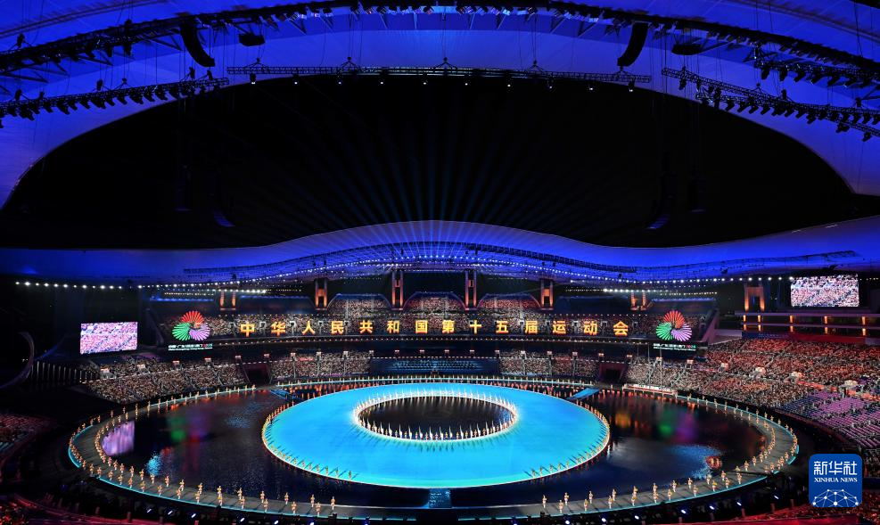 这是11月9日拍摄的广东奥林匹克体育中心内景。当日,第十五届全国运动会开幕式在广东奥林匹克体育中心举行。新华社记者 李鑫 摄