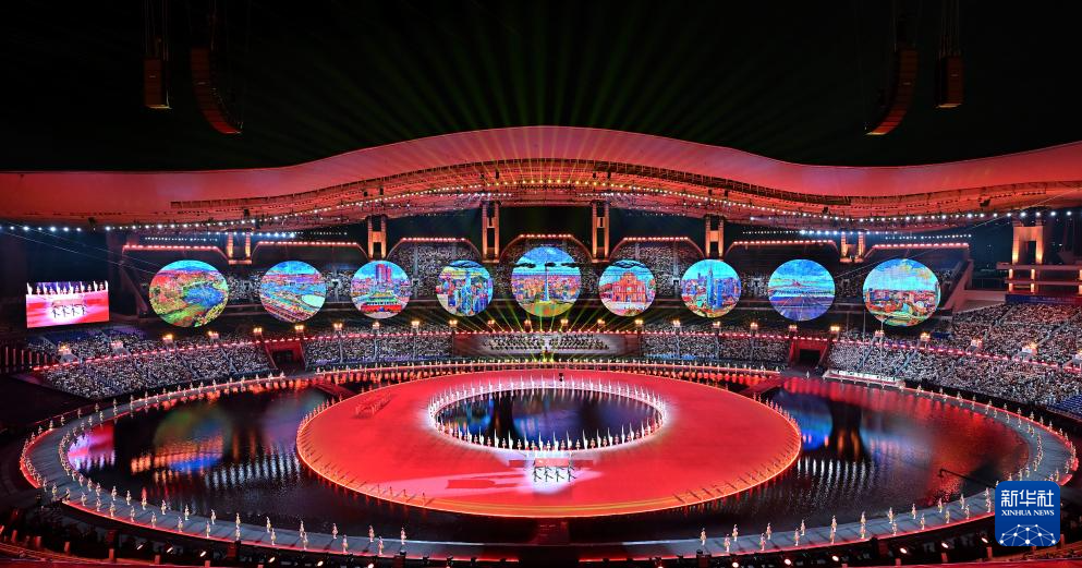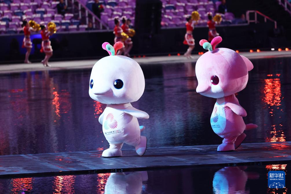11月9日,第十五届全国运动会吉祥物“喜洋洋”和“乐融融”在开幕式现场表演。当日,第十五届全国运动会开幕式在广东奥林匹克体育中心举行。新华社记者 雒圆 摄