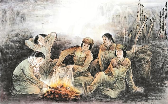 上海五姑娘 李秀峰 绘 作品介绍:1962年4月,原农十师政干校学员赴农场劳动实践。王莲熙、何文华、张进宜、黄玉清、袁玉美5位上海姑娘,坚决要求到最艰苦的农十师二十九团(现十师一八二团)扎根奉献。