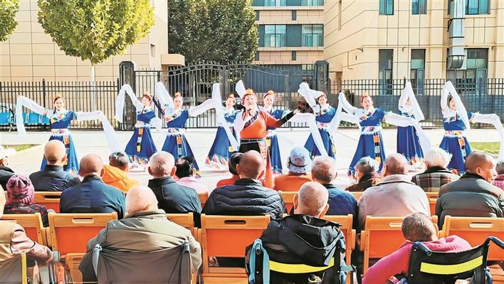 志愿者们来到阿拉尔市银龄大家庭老年公寓(残疾人托养中心),为老人们献上精彩的文艺演出(摄于10月29日)。张霞 摄