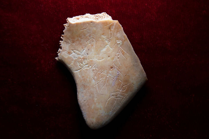 陕西宝鸡周原遗址出土的刻辞甲骨(2025年2月25日摄)。新华社记者 李一博 摄