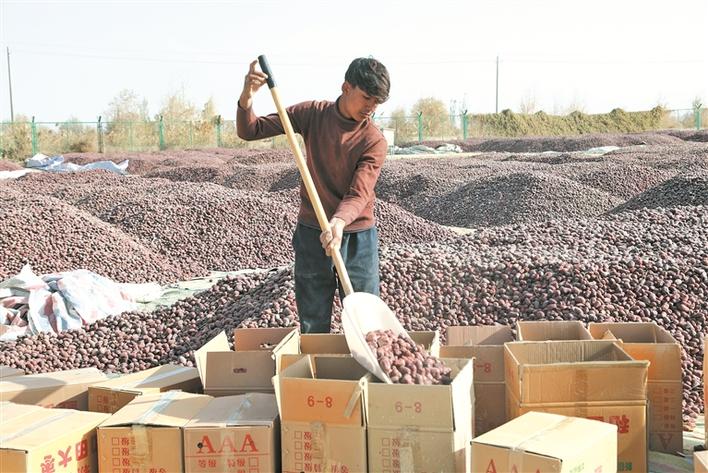 现在,二二四团玉园镇的加工厂、物流公司、枣花里电商街一个接一个建起来。职工们笑着说:“以前是‘一颗枣换一碗面’,现在是‘一颗枣富一个家’!”