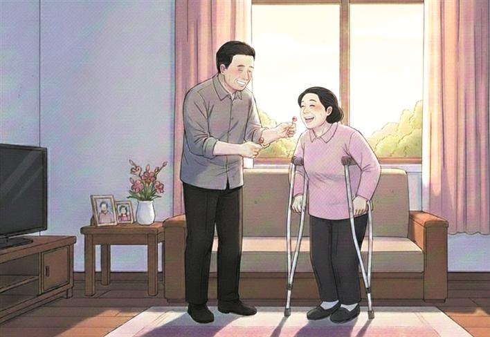 ⑩如今家中,妻子已能拄着八字拐缓缓行走。盛茂宫站在一旁,眼中满是宠溺。“每天下班能听见她喊我名字,看见她笑,我就心满意足了。”二十年光阴如水,他用坚守与深沉的爱,稳稳地撑起了这个家。