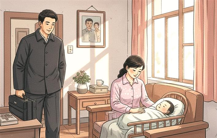 ②温馨的小家里,妻子正轻声哄着摇篮里的儿子,眉眼温柔。盛茂宫刚下班推门而入,脸上已不自觉露出笑容。那一刻,一家三口的日常里,满是暖融融的欢声笑语。