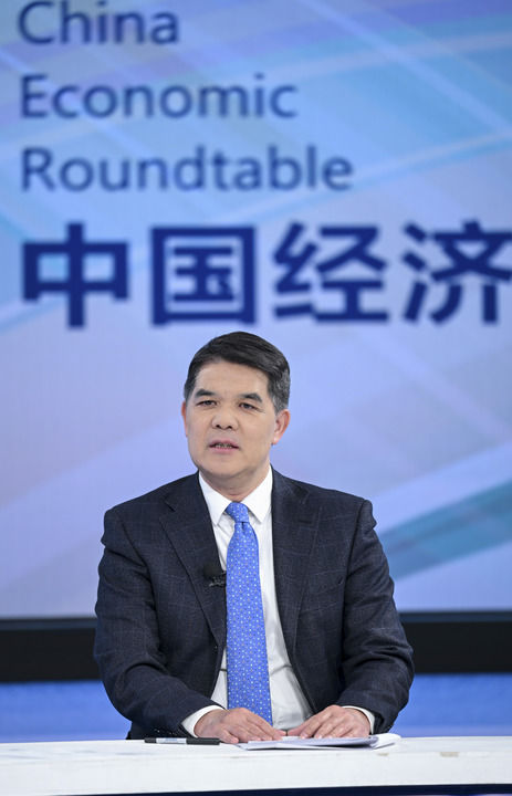 国家发展改革委宏观经济研究院院长黄汉权在第二十六期“中国经济圆桌会”大型全媒体访谈节目录制现场发言。新华社记者陈晔华摄