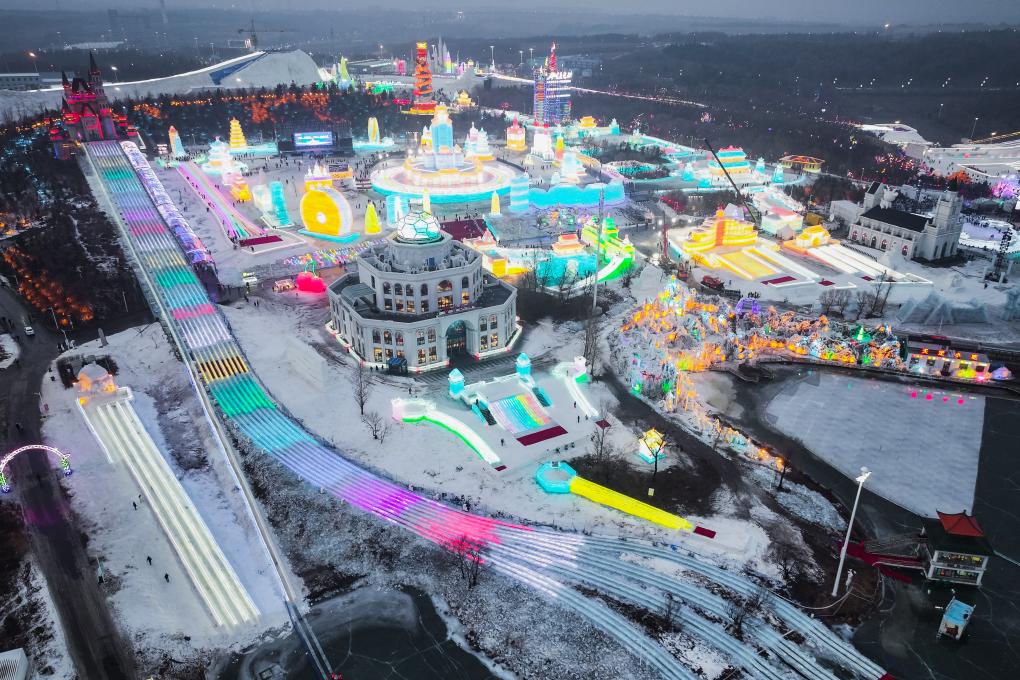 这是12月19日拍摄的长春市冰雪新天地景区(无人机照片)。新华社发(张扬摄)
