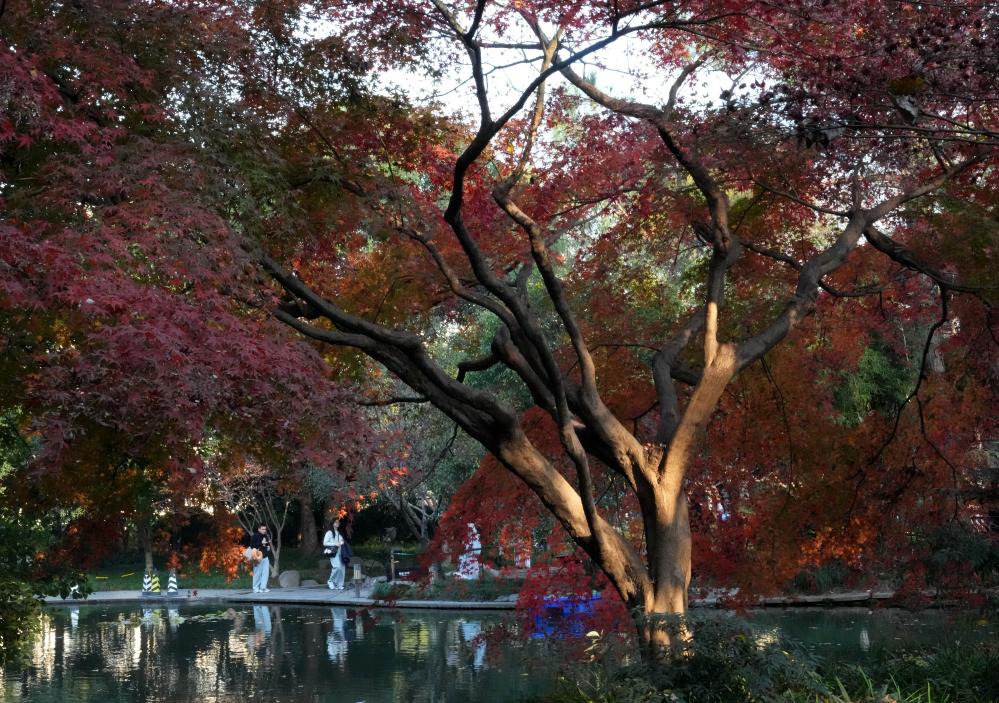 12月19日,游客在杭州西湖边的一座公园内赏景游玩。新华社记者韩传号摄