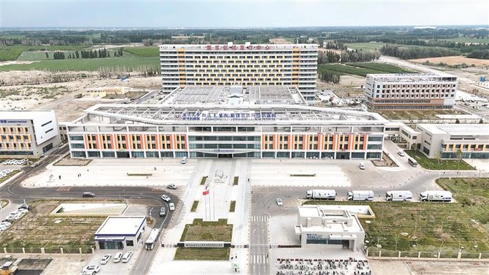 兵团首个国家区域医疗中心——浙江大学医学院附属邵逸夫医院新疆兵团阿拉尔医院鸟瞰(资料图片)。兵团国家区域医疗中心集医疗、教学、科研、保健、康复和应急等功能于一体,突出发挥微创技术应用、呼吸危重症诊疗、肿瘤诊治、妇儿急危重症医疗、病理诊断、紧急医学救援等作用,有效提升南疆地区医疗服务水平,满足了兵地职工群众多元化就医需求。兵团日报常驻记者 潘许 摄