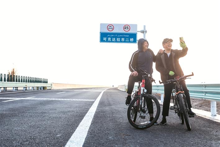 12月8日,市民在可克达拉市二桥骑行打卡。兵团日报常驻记者 杨俊钦 摄