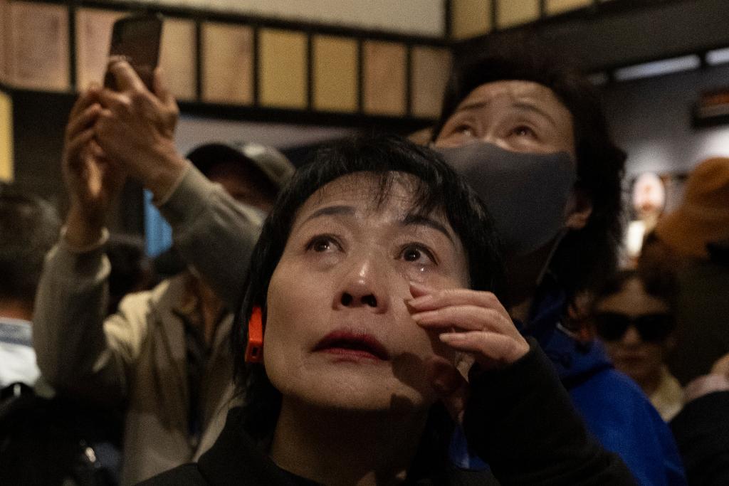 2025年9月18日,一名参观者在侵华日军第七三一部队罪证陈列馆落泪。新华社记者 张涛 摄