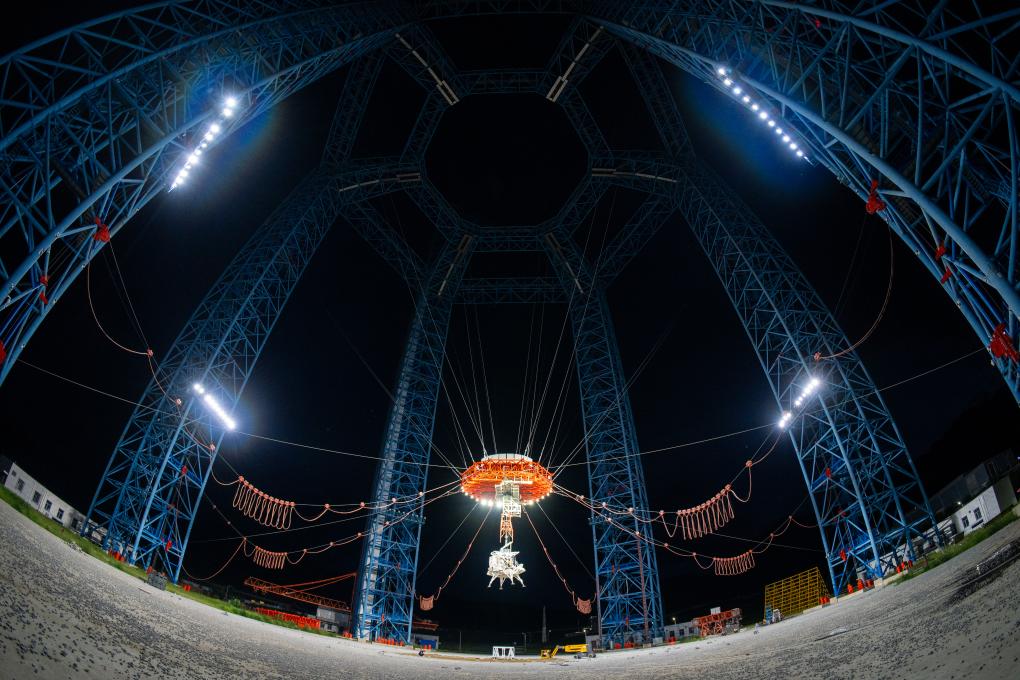 2025年8月6日,揽月月面着陆器着陆起飞综合验证试验在位于河北省怀来县的地外天体着陆试验场圆满完成。这是揽月月面着陆器在地外天体着陆试验场进行测试(资料照片)。新华社发(刘永婧 摄)