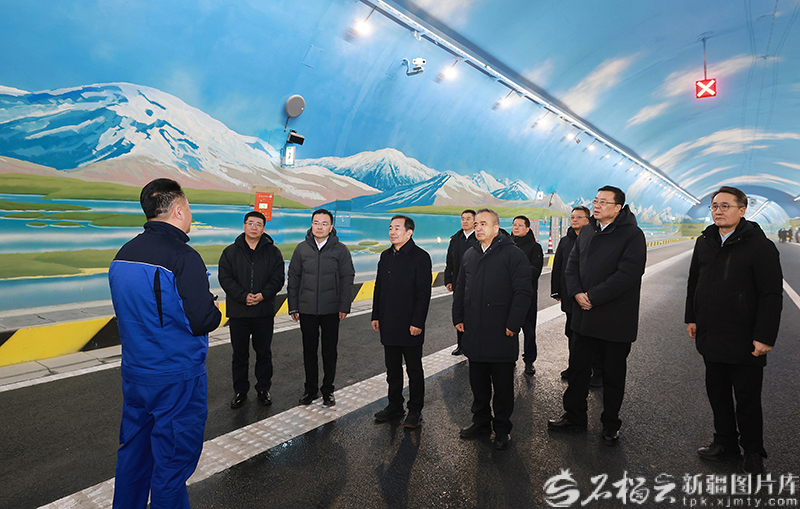 12月26日,自治区党委书记陈小江、自治区主席艾尔肯·吐尼亚孜在G0711乌尉高速天山胜利隧道,调研工程建设运营工作,代表自治区党委和政府向公路建成通车表示热烈祝贺。天山网-新疆日报记者 崔志坚摄