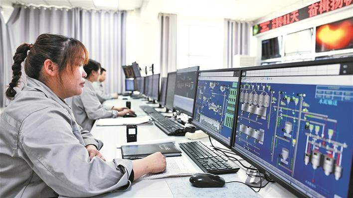 在新疆青松建材化工(集团)股份有限公司水泥分公司中控室内,工作人员在调度日常生产(资料图片)。青松建化以智能制造为主攻方向、以信息化技术集成创新为突破口,大力推进“互联网+制造业”深度融合发展,以数字技术赋能传统制造业转型升级。(据兵团日报资料库)