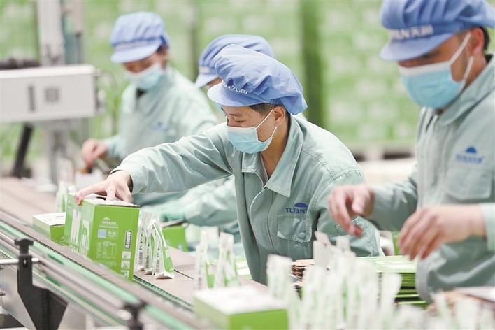 新疆天润乳业股份有限公司工人在包装酸奶(资料图片)。天润乳业持续建立完善现代企业制度,实现了国有资本保值增值,企业效益显著提升。兵团日报常驻记者 田园 摄