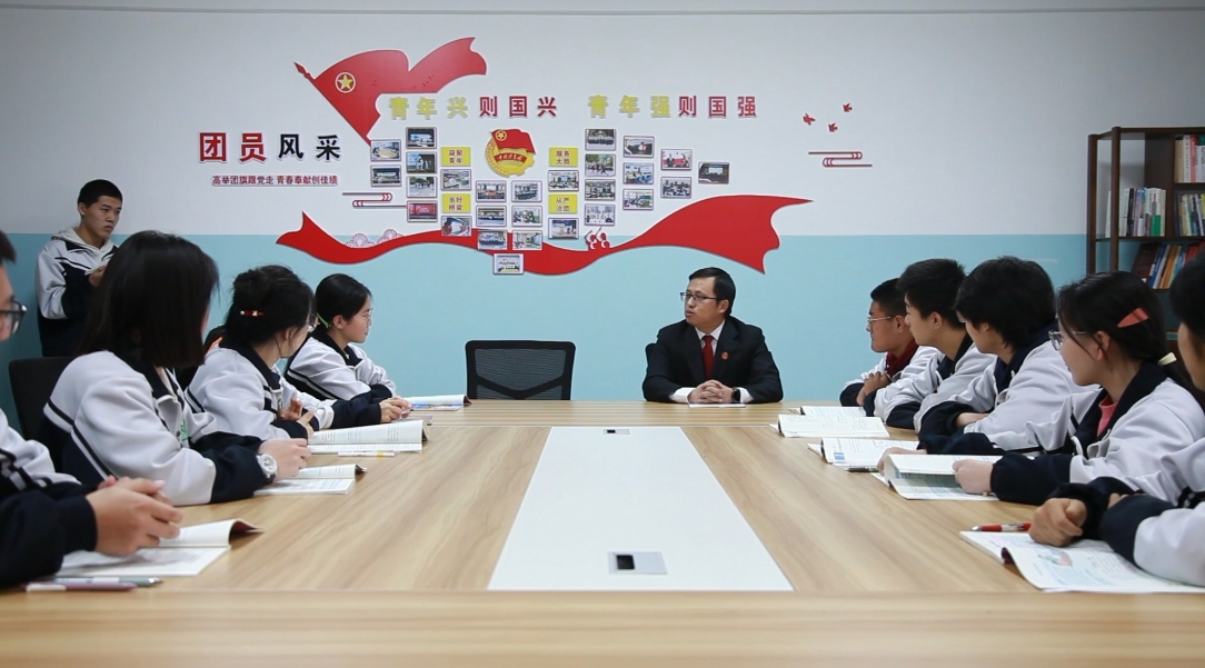 五家渠高级中学积极探索思政教育新路径,在2025年5月,打造六师五家渠市首个“校园法官工作室”。定期邀请法治副校长驻点,通过模拟法庭、法治讲座等形式,让学生观摩校园欺凌、权益保护等案件的庭审现场。近年来,学校积极推进“大思政课”建设,开展各项外联活动,让学生走入税务局、检察院、法院、社区等地,让学生身临其境感受思政课堂。