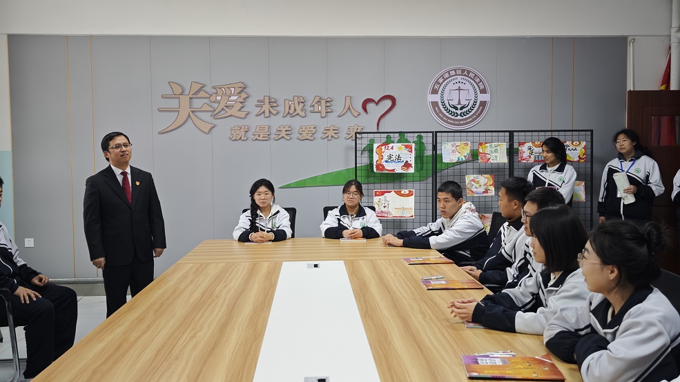 12月26日下午,一堂“沉浸式”法律知识讲座在五家渠高级中学“校园法官工作室”展开。这堂课由五家渠垦区人民法院法官丁文灿主导,五家渠高级中学政治老师类芳结合《中华人民共和国民法典》《中华人民共和国刑法》相关内容开展教学。