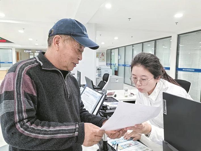2025年12月25日,在十二师市民中心政务服务大厅医保服务窗口,工作人员(左)为前来办理医保卡业务的群众讲解流程。兵团日报常驻记者 冯晓玲 摄