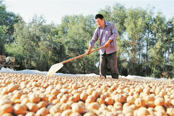 一师三团晾晒的核桃(资料图片)。李元 提供