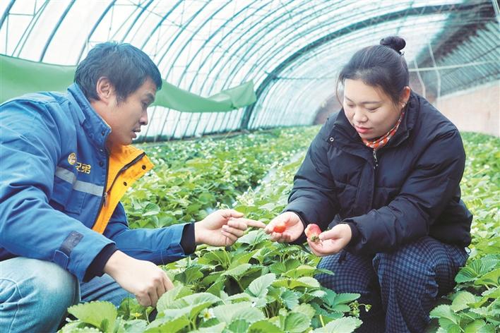 1月9日,在六师一〇一团一连花卉大棚里,种植户查看草莓长势。近年来,该连立足资源禀赋大力发展设施农业,已建成花卉大棚14座、树莓大棚20座、草莓大棚3座、蔬菜大棚63座,形成多元互补的大棚作物种植格局,并积极打造树莓、草莓等农产品加工产业,逐步构建起“种、采、销、游”一体化的生态循环发展模式,探索出一条农业增效、职工增收的发展之路。兵团日报常驻记者 魏新江 通讯员 卜祥龙 摄