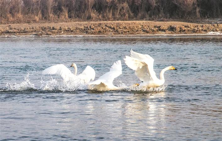 天鹅在二师二十一团天鹅湾戏水(摄于2025年12月28日)。兵团日报常驻记者 李嘉成 摄