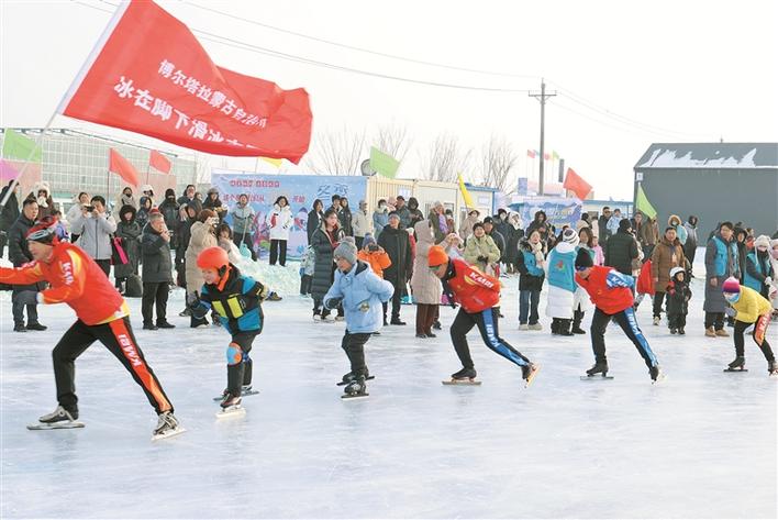1月1日,五师双河市市民在双河古道温泉冰雪运动场滑冰。岳佳豪 摄