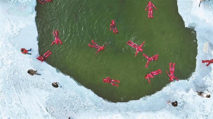 寒冬时节,玉带河冰面如镜,湛蓝澄澈。一项突破想象的新奇体验就在这里展开,参与者身着特制装备,破开冰层,缓缓浸入水中,而后放松身心,漂浮于冰水之间。专程从上海赶来的游客庞帅体验后惊喜不已:“全身心沉浸在冰水里,太解压了。”