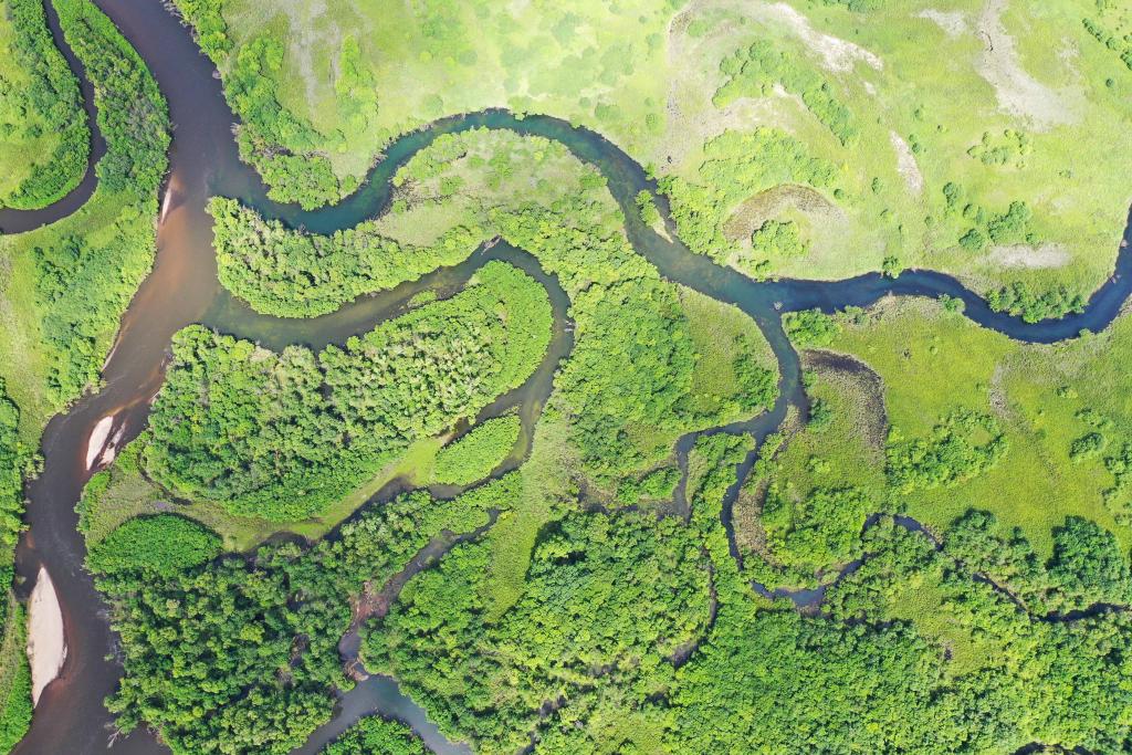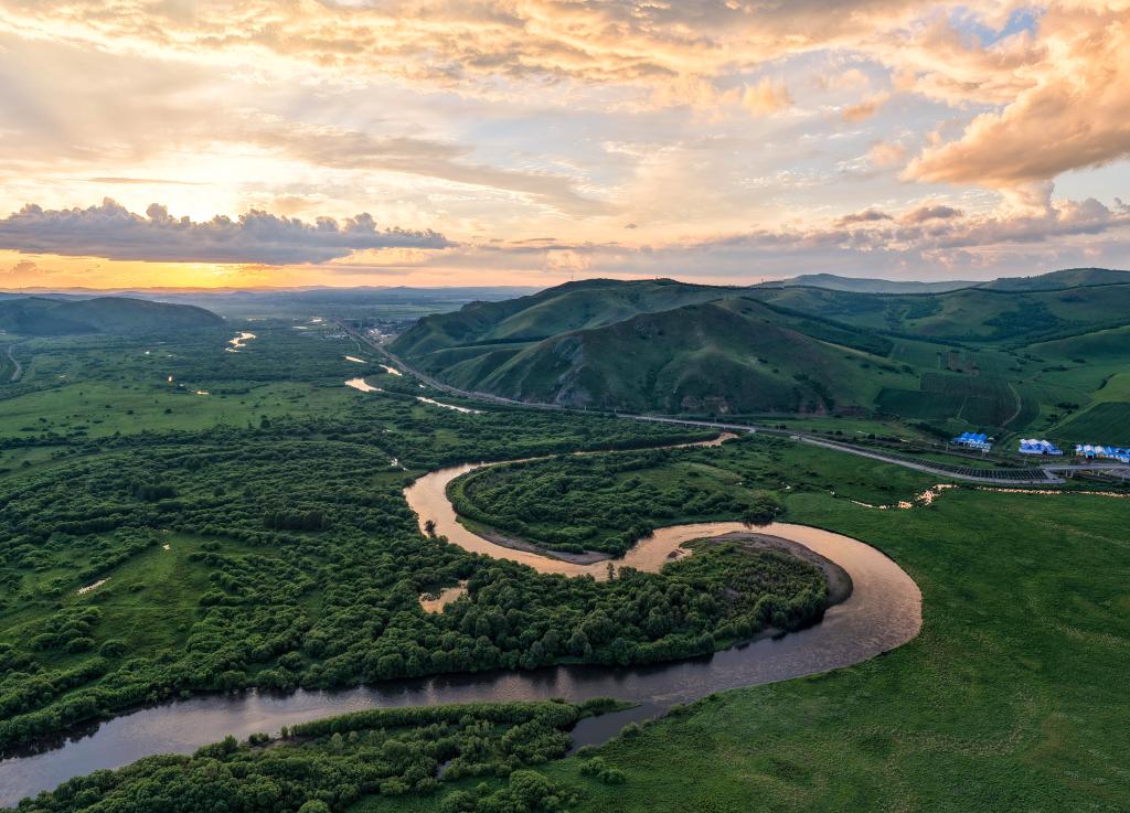 2025年7月10日,内蒙古免渡河国家湿地公园风光(无人机照片)。新华社记者 马金瑞 摄