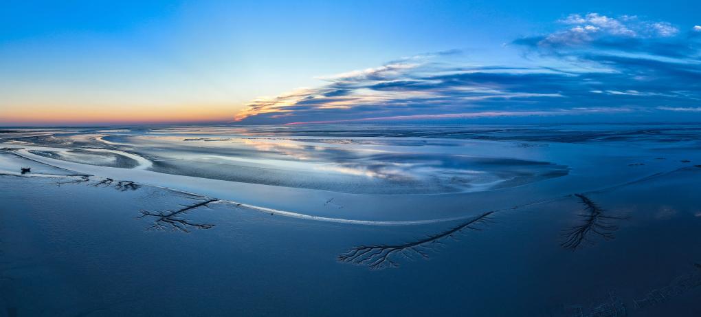 2024年10月29日,在江苏省盐城市东台条子泥湿地拍摄的潮汐树(无人机照片)。新华社发(孙家录 摄)