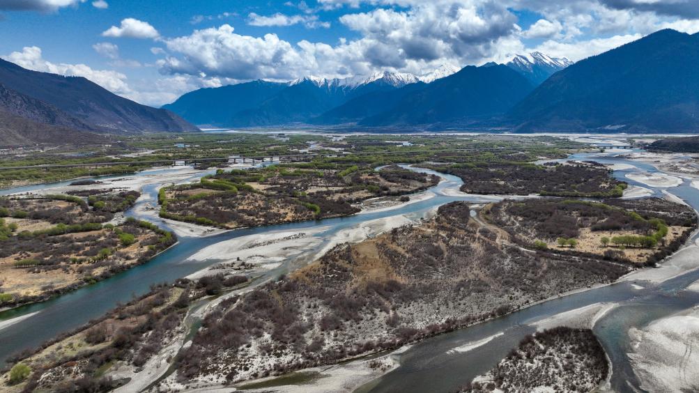 从空中俯瞰西藏雅尼国家湿地公园(2025年4月2日摄,无人机照片)。新华社记者 晋美多吉 摄