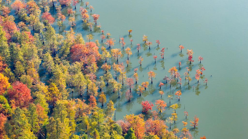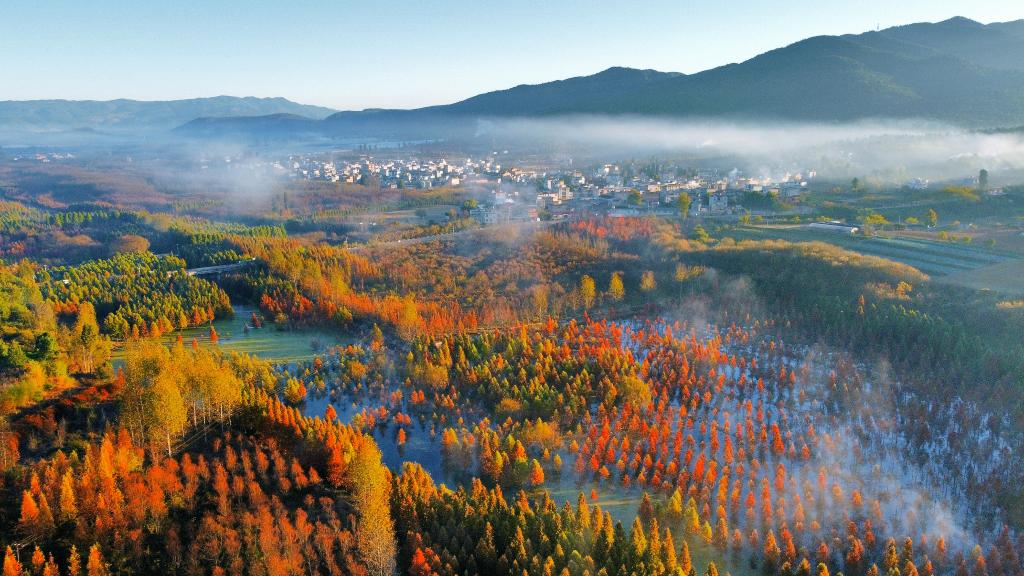 2022年11月21日,云南甸尾村水杉湿地一景(无人机照片)。新华社发(费超 摄)
