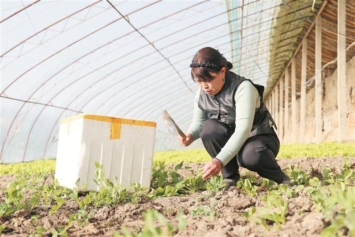 1月29日,宋小红在自家大棚内移栽定植上海青幼苗。兵团日报常驻记者 李欣奕 摄