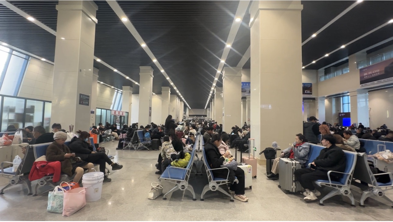2月2日,阿拉尔火车站候车大厅内,旅客等待出行。李萍 摄