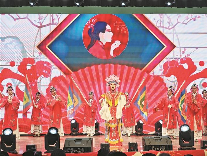 1月30日,十二师三坪农场举办“自贸跃马启新程 兵地携手谱春晖”迎春联谊会。图为演员们表演戏曲节目《梨园盛世》。兵团日报常驻记者 冯晓玲 摄