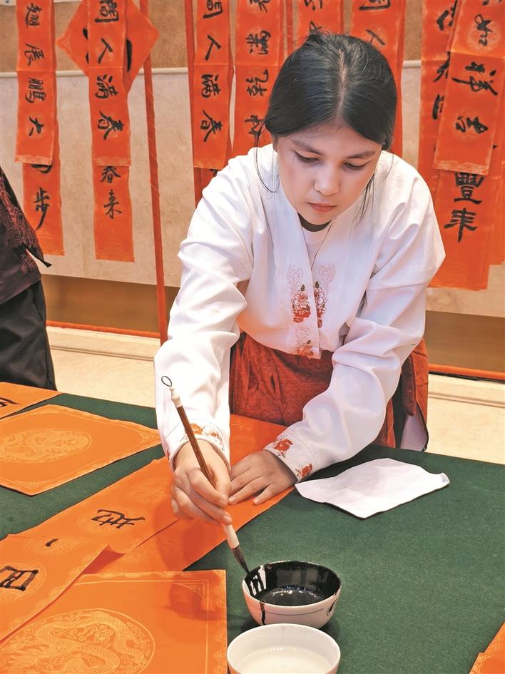 活动当天,祖拜旦·达吾提书写的春联被郑重地送到现场职工群众手中。红纸黑字,映衬着她略带羞涩却明亮的笑容。她送出的不只是新春的祝福,更是一场无声的中华优秀传统文化的传承。祖拜旦·达吾提所说:“书法让我明白,这是我们共同的文字和艺术。”这份认同,让笔墨间的韵味超越了形式,成为连接心灵的纽带。