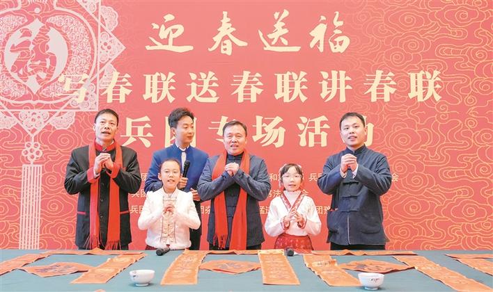 春潮涌动,墨香氤氲。2月6日,2026年兵团“迎春送福”写春联、送春联、讲春联专场活动启幕。值此辞旧迎新之际,各族职工群众欢聚一堂,赏文艺、品春联、话团圆、共祈福。