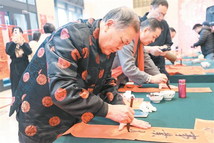 2月6日,2026年兵团“迎春送福”写春联、送春联、讲春联专场活动现场,书法家们在书写春联。兵团日报全媒体记者 赵紫璇 摄