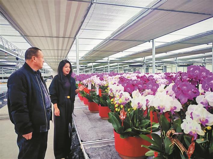 2月3日,在兵团国际花卉产业园,各种造型的蝴蝶兰竞相绽放,吸引客商咨询选购。兵团日报全媒体记者 陈琼 马雪娇 摄