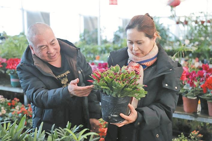 2月1日,顾客在十师一八七团友盛丰庆景观花卉基地选购花卉。兵团日报常驻记者 郑瑶 摄