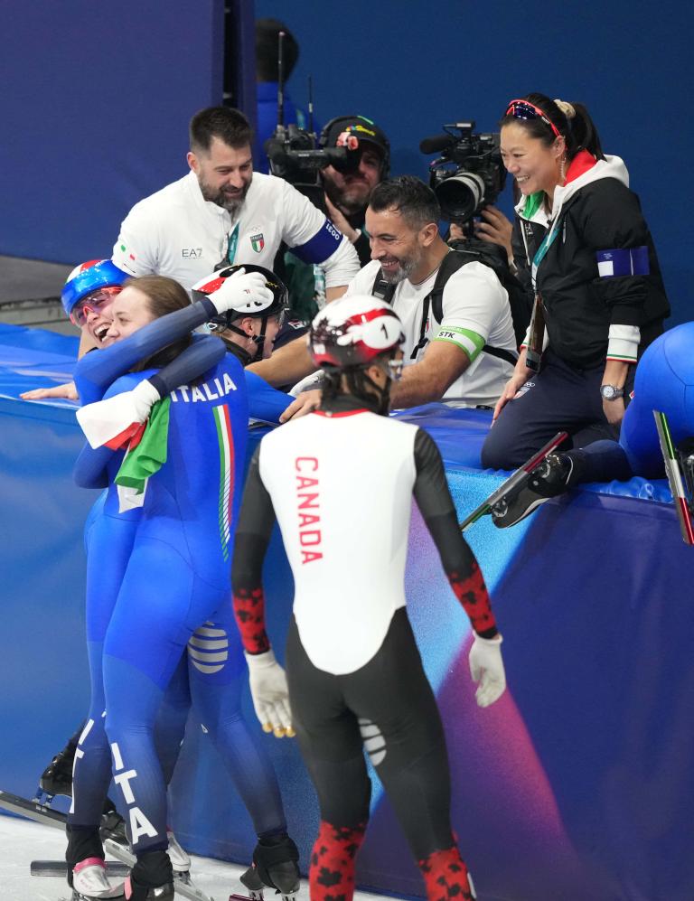 当日是短道速滑开赛首日,东道主队斗志昂扬,在2000米混合接力四分之一决赛、半决赛中发挥出色。决赛中,面对卫冕冠军中国队和传统强队加拿大队,意大利队毫不畏惧,在一度处于领滑位置的中国队略显犹豫时实现超越,以2分39秒019的成绩摘得金牌。