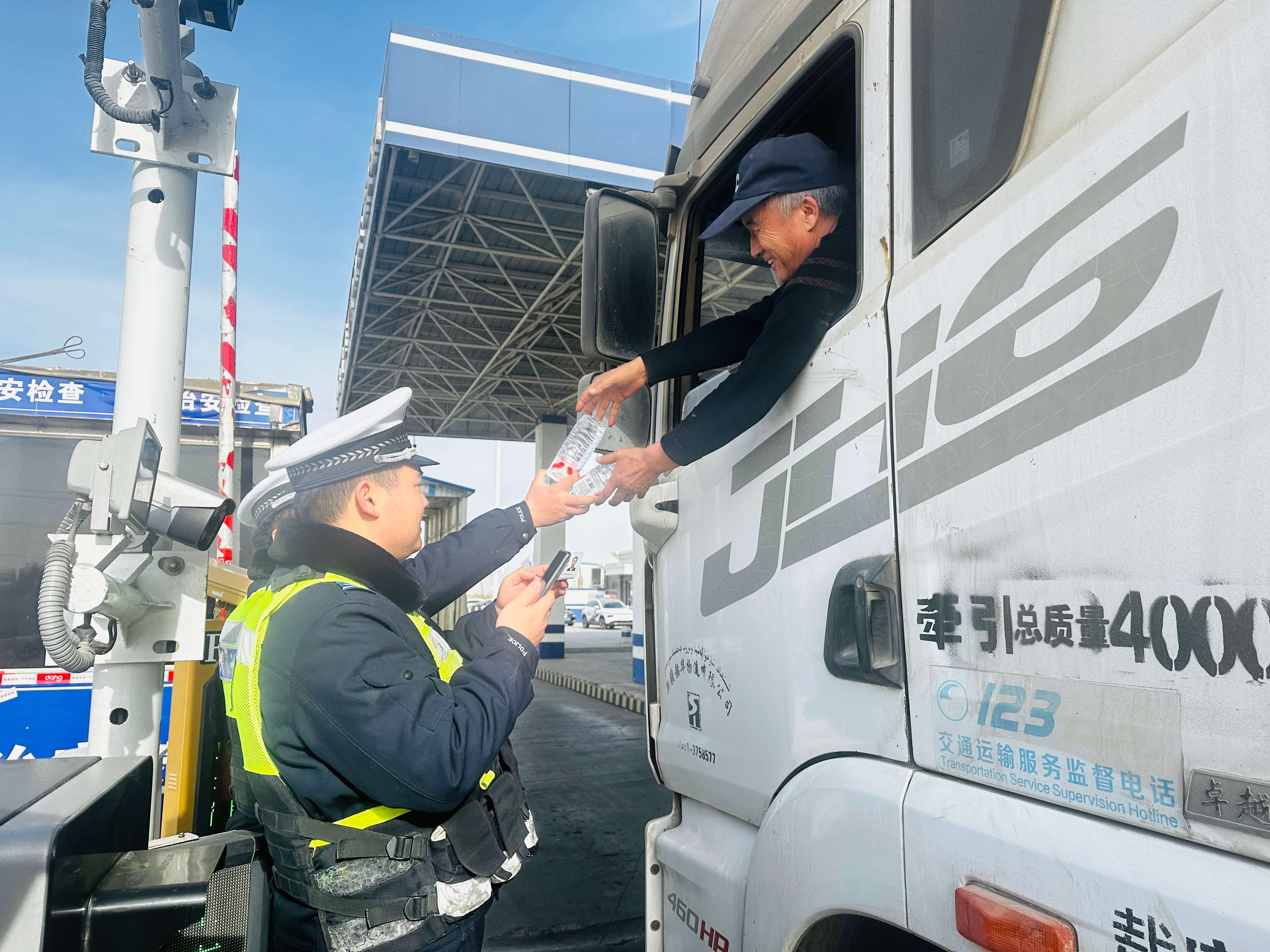 执法站里,另一幕同样暖心:民警为过往司机递上安全提示卡、矿泉水,还有阿拉尔当地的特产苹果、梨子。“主要是给路过辖区的驾驶员,让他们感受公安交警的温度,尤其是对于辖区外的司乘人员,希望他们能够感受到阿拉尔的温暖。”一师阿拉尔垦区公安局交管大队阿和公路公安交通警察执法站负责人虞玖金说。