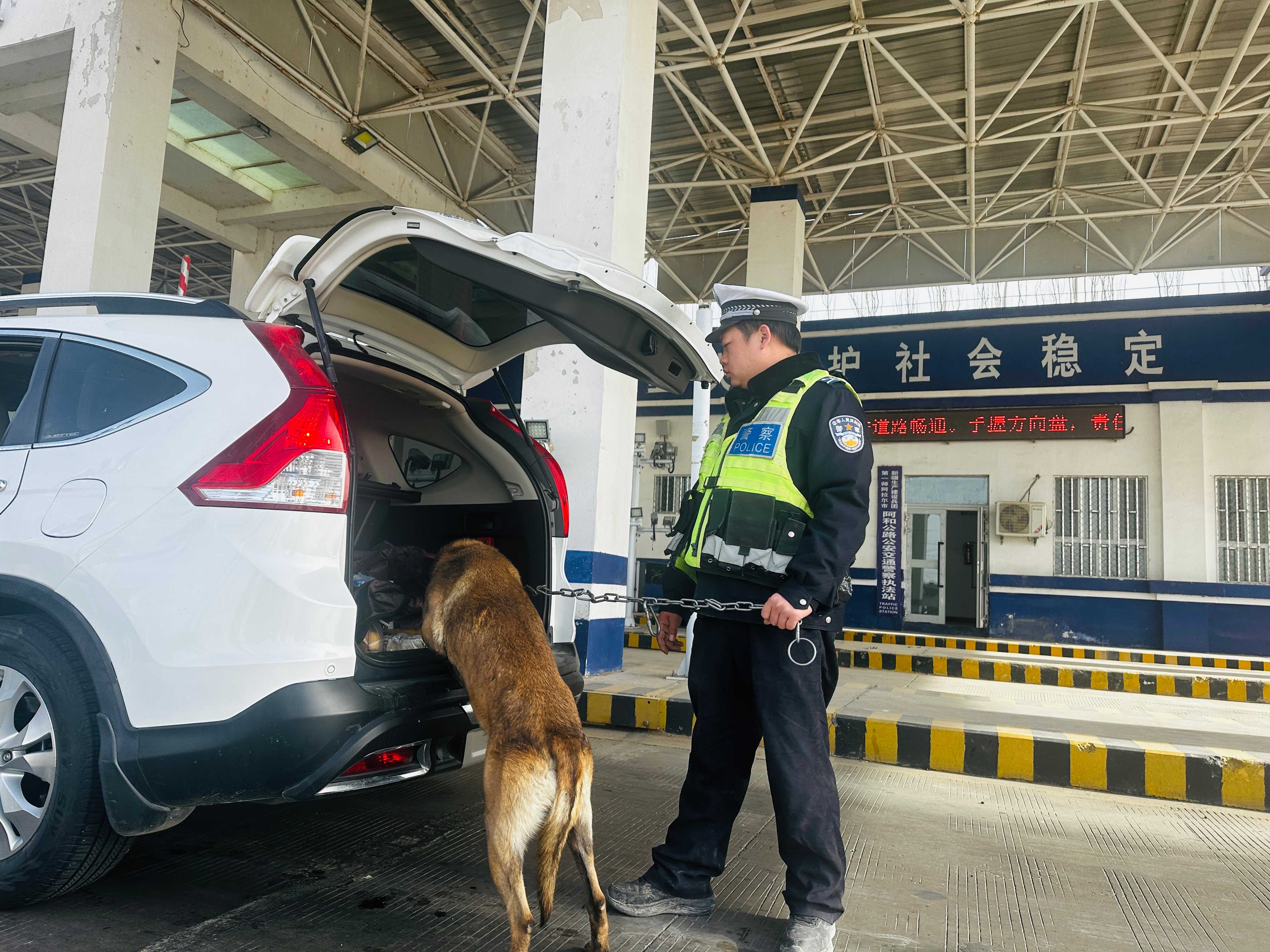 沿阿和公路向南,阿拉尔市阿和公路公安交通警察执法站车流不息。这里是进出辖区的咽喉要道,春节前夕车流量激增。笔者见到警犬“风影”时,这只3岁的马犬正嗅探完一辆货车,转身用头蹭向带犬辅警霍亚周。