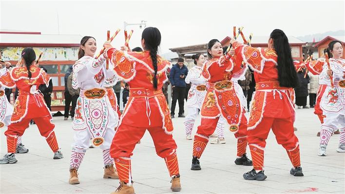 社火表演点燃了闹新春的热情,非遗技艺有了青年一代的传承更显生机活力。在三师五十一团文化广场上,近百名青少年身着盛装,打起国家级非遗安塞腰鼓。“我想用响亮的鼓声传递新春祝福,让更多人看到非遗的独特魅力。”学生祖丽阿耶·库尔班艾力自豪地说道。
