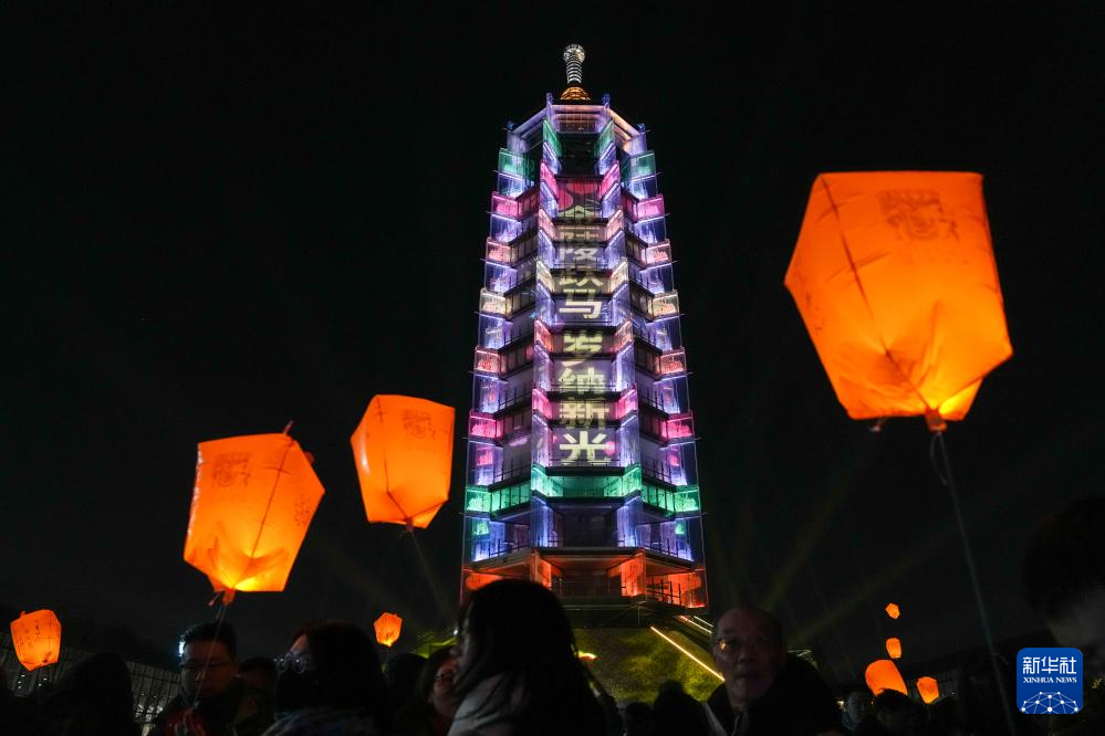 2月17日,南京大报恩塔点亮多彩灯光庆祝春节。新华社记者 李博 摄