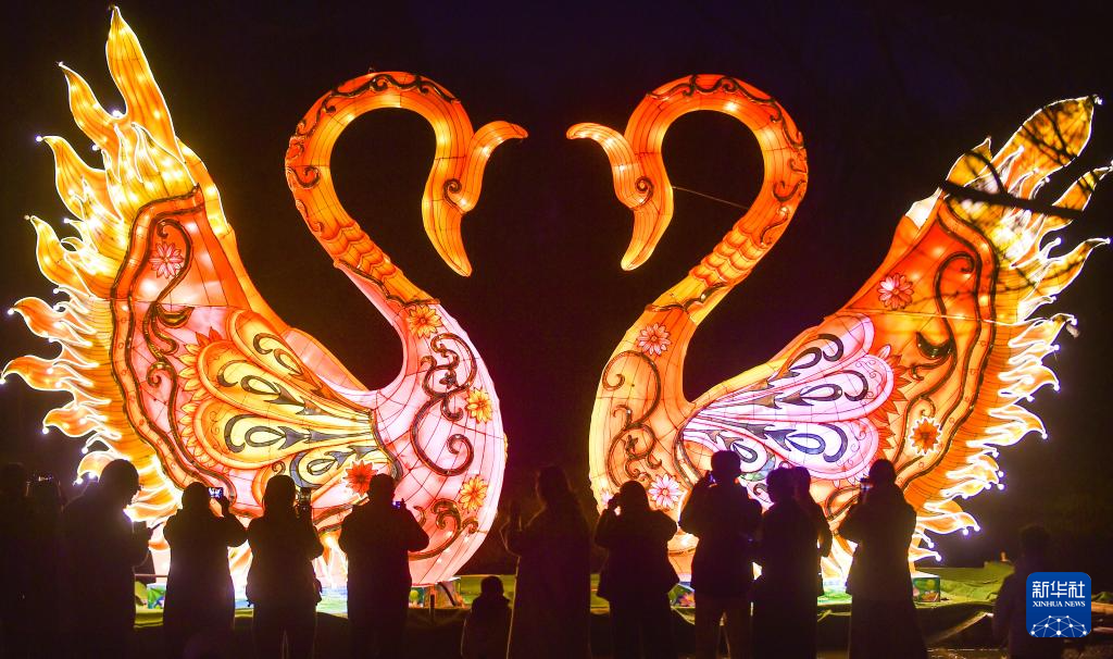 2月17日,游客在河南省洛阳市隋唐城遗址植物园欣赏“神都上元灯会”主题特色灯展。新华社发(黄政伟 摄)