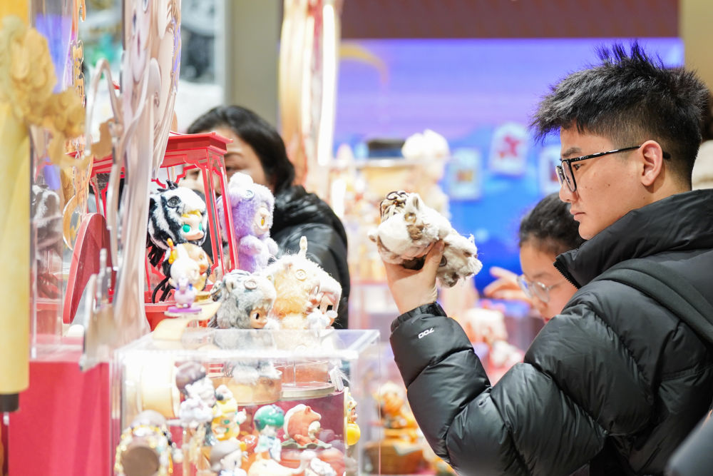 2026年2月13日,顾客在安徽合肥一处购物中心选购潮玩手办。