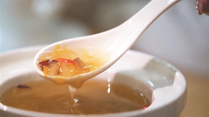 为金耳香梨羹(资料图片)。张昆 摄